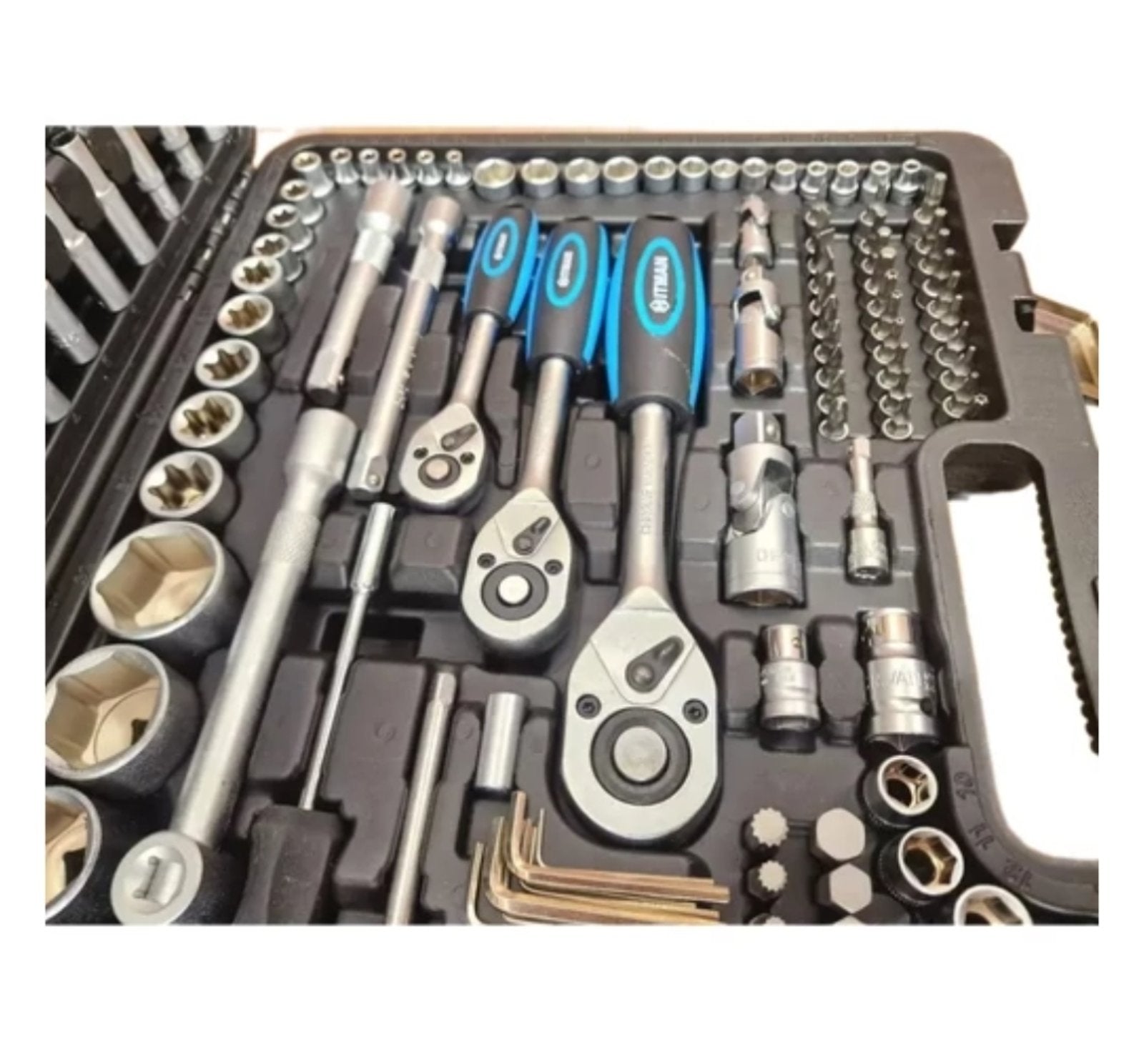 Set dolazi u čvrstom koferu sa jasno označenim ležištima za svaki deo, što omogućava lako organizovanje i brzu upotrebu. Idealno za mehaničare, majstore, servisere i sve koji vole precizan i pouzdan alat.